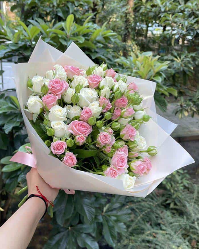 - 15 веточек кустовых роз нежных оттенков